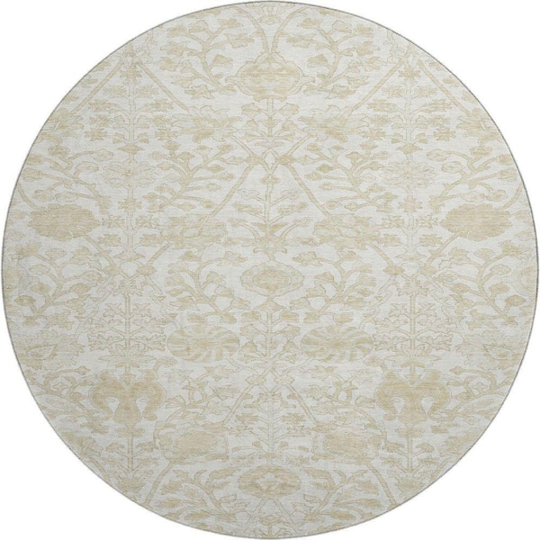 Mayfield Premium Machine Washable Abstract AMF1973 Ivory 8 ft. x 8 ft. Round Rug