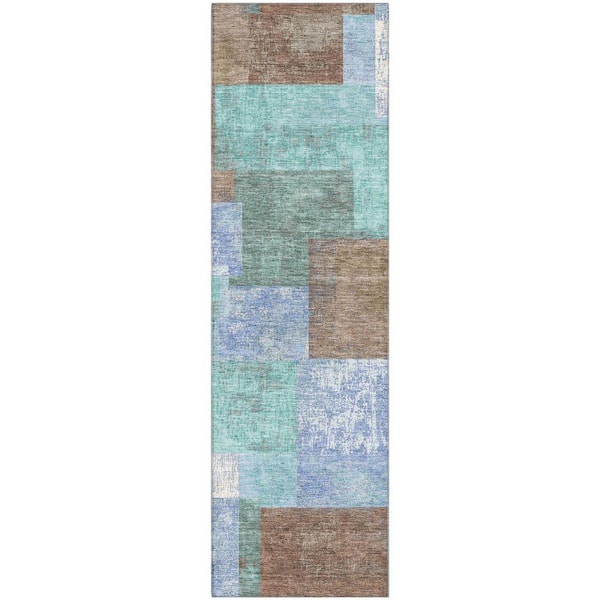 Mayfield Premium Machine Washable Abstract AMF1974 Brown 2 ft. x 7 ft. Runner Rug