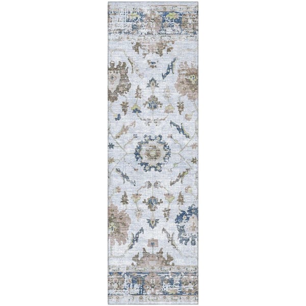 Mayfield Premium Machine Washable Abstract AMF1976 Blue 2 ft. x 7 ft. Runner Rug