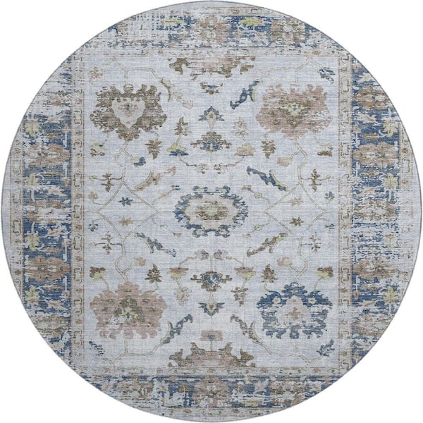 Mayfield Premium Machine Washable Abstract AMF1976 Blue 8 ft. x 8 ft. Round Rug