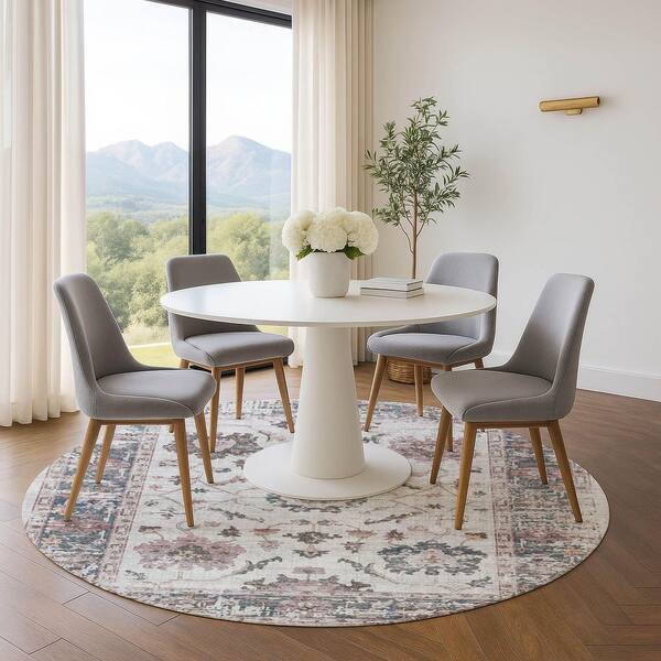 Mayfield Premium Machine Washable Abstract AMF1976 Blush 8 ft. x 8 ft. Round Rug