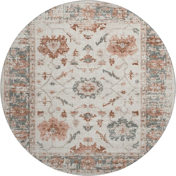 Mayfield Premium Machine Washable Abstract AMF1976 Linen 8 ft. x 8 ft. Round Rug