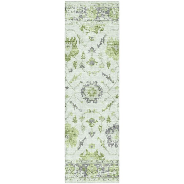 Mayfield Premium Machine Washable Abstract AMF1976 Mint 2 ft. x 7 ft. Runner Rug