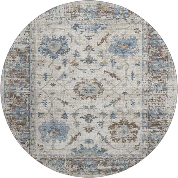 Mayfield Premium Machine Washable Abstract AMF1976 Putty 8 ft. x 8 ft. Round Rug