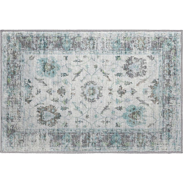 Mayfield Premium Machine Washable Abstract AMF1976 Teal 2 ft. x 3 ft. Accent Rug