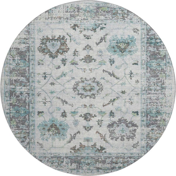 Mayfield Premium Machine Washable Abstract AMF1976 Teal 8 ft. x 8 ft. Round Rug