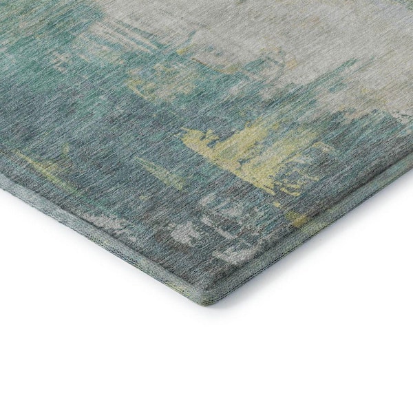 Mayfield Premium Machine Washable Abstract AMF1977 Seafoam 3 ft. x 5 ft. Area Rug