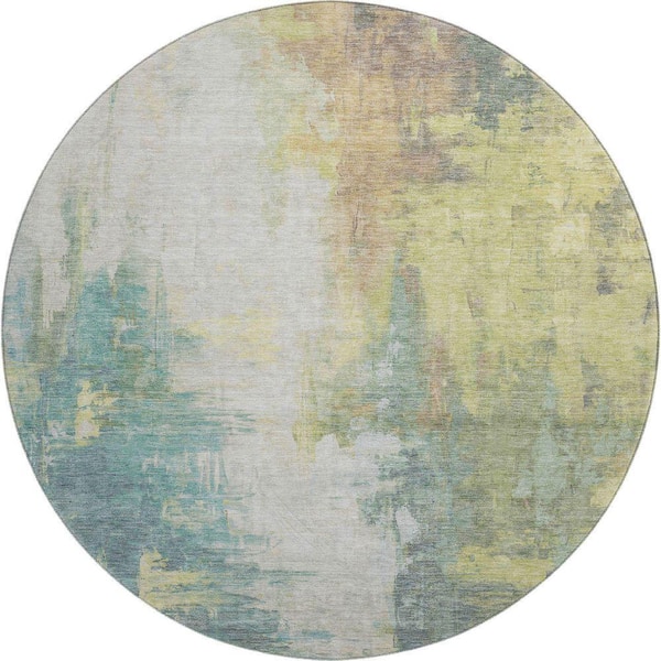 Mayfield Premium Machine Washable Abstract AMF1977 Seafoam 8 ft. x 8 ft. Round Rug