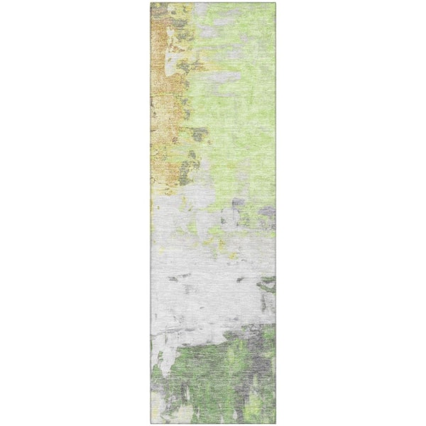 Mayfield Premium Machine Washable Abstract AMF1978 Aloe 2 ft. x 7 ft. Runner Rug