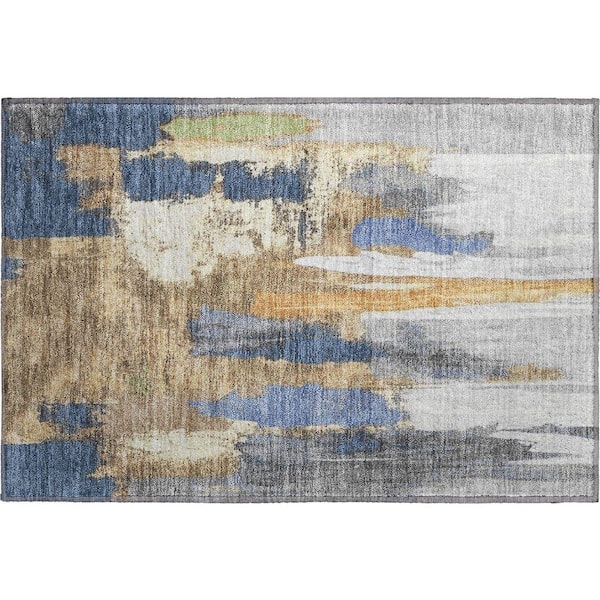 Mayfield Premium Machine Washable Abstract AMF1979 Navy 2 ft. x 3 ft. Accent Rug