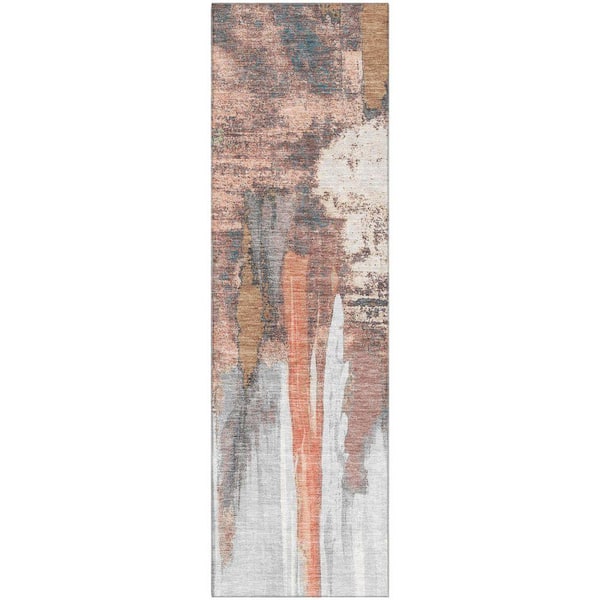 Mayfield Premium Machine Washable Abstract AMF1979 Terracotta 2 ft. x 7 ft. Runner Rug