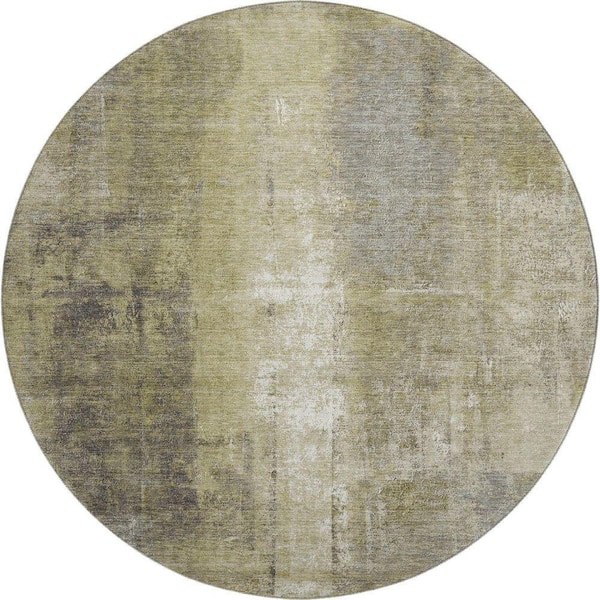 Mayfield Premium Machine Washable Abstract AMF1980 Gold 8 ft. x 8 ft. Round Rug