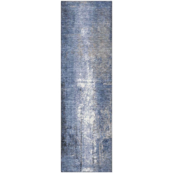 Mayfield Premium Machine Washable Abstract AMF1980 Navy 2 ft. x 7 ft. Runner Rug