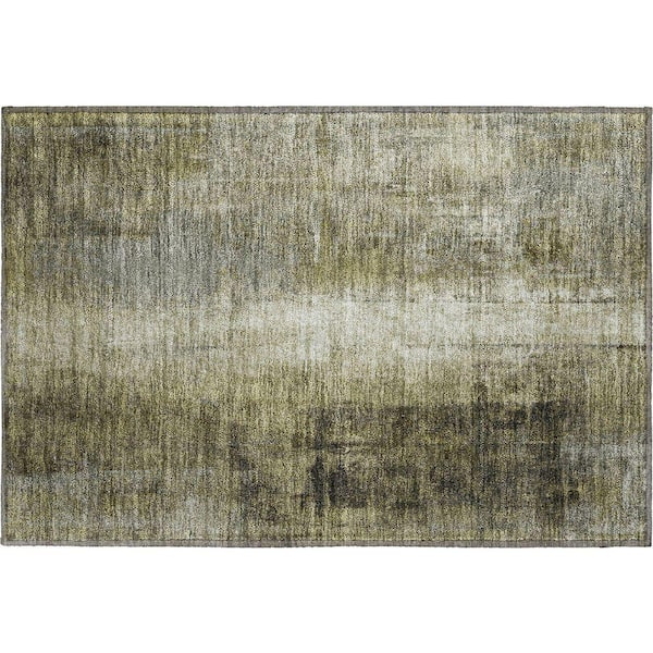 Mayfield Premium Machine Washable Abstract AMF1980 Olive 2 ft. x 3 ft. Accent Rug