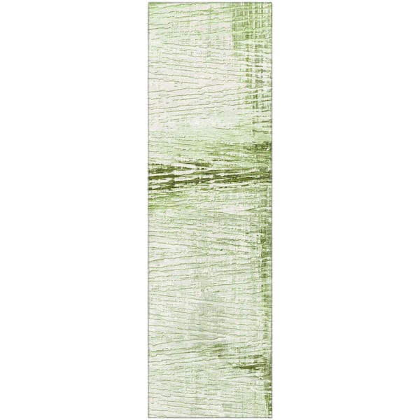 Mayfield Premium Machine Washable Abstract AMF1981 Aloe 2 ft. x 7 ft. Runner Rug