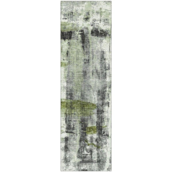 Mayfield Premium Machine Washable Abstract AMF1982 Olive 2 ft. x 7 ft. Runner Rug