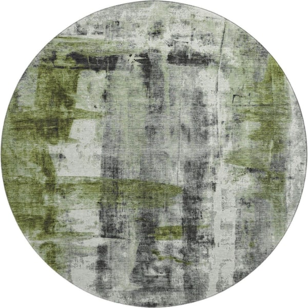 Mayfield Premium Machine Washable Abstract AMF1982 Olive 8 ft. x 8 ft. Round Rug