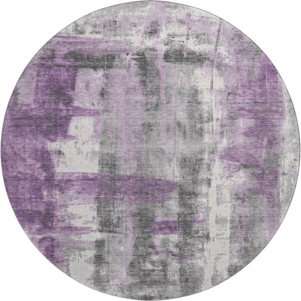 Mayfield Premium Machine Washable Abstract AMF1982 Purple 8 ft. x 8 ft. Round Rug