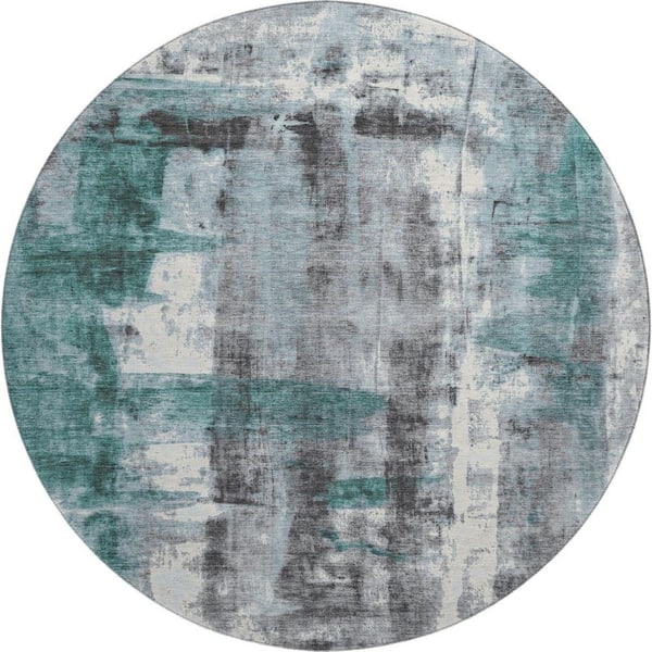 Mayfield Premium Machine Washable Abstract AMF1982 Teal 8 ft. x 8 ft. Round Rug