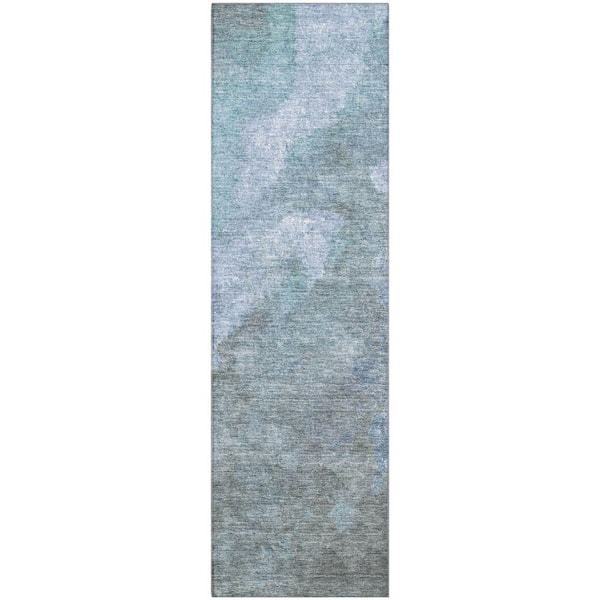 Mayfield Premium Machine Washable Abstract AMF1983 Blue 2 ft. x 7 ft. Runner Rug