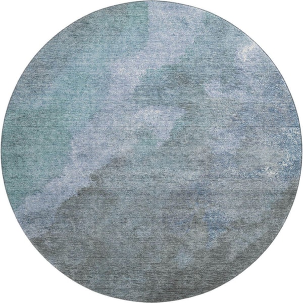 Mayfield Premium Machine Washable Abstract AMF1983 Blue 8 ft. x 8 ft. Round Rug