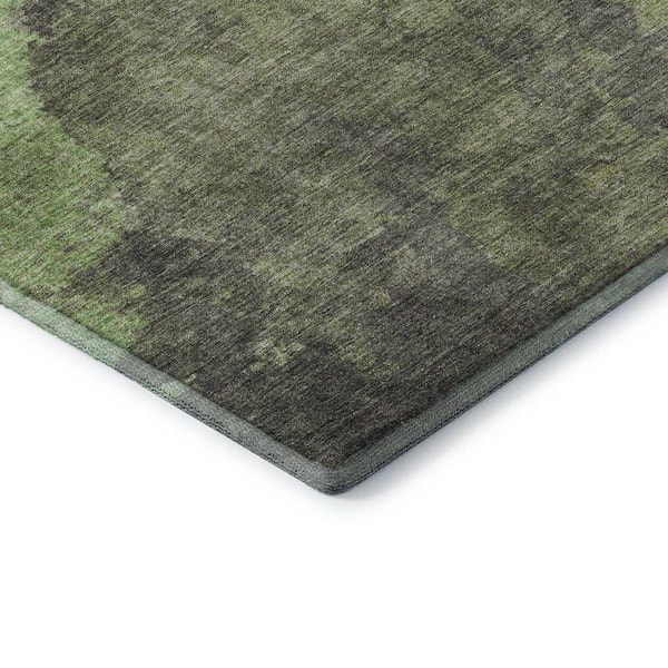 Mayfield Premium Machine Washable Abstract AMF1983 Green 8 ft. x 8 ft. Round Rug