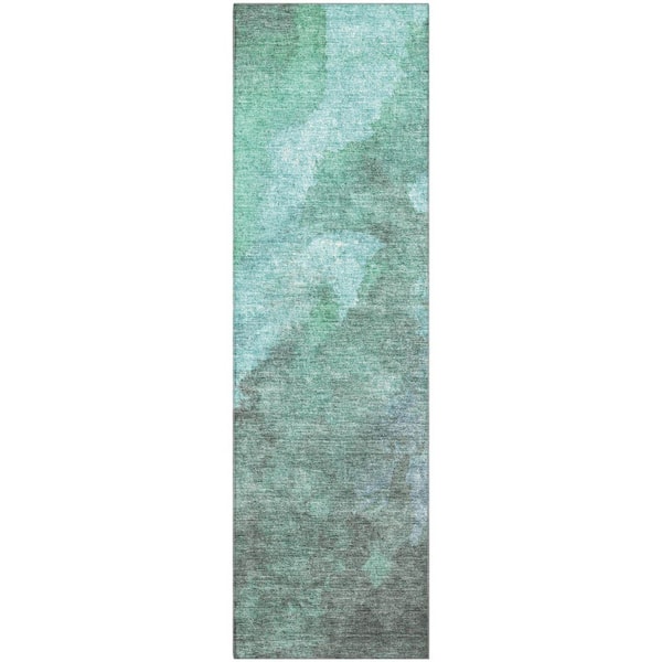 Mayfield Premium Machine Washable Abstract AMF1983 Teal 2 ft. x 7 ft. Runner Rug