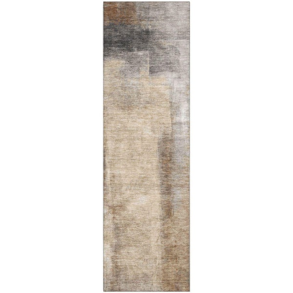 Mayfield Premium Machine Washable Abstract AMF1984 Beige 2 ft. x 7 ft. Runner Rug