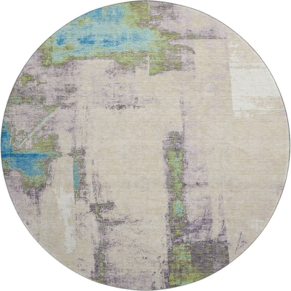 Mayfield Premium Machine Washable Abstract AMF1984 Linen 8 ft. x 8 ft. Round Rug