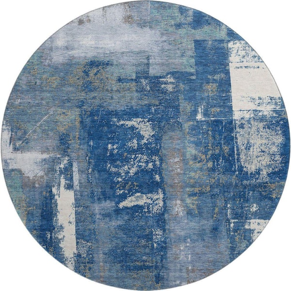 Mayfield Premium Machine Washable Abstract AMF1984 Navy 8 ft. x 8 ft. Round Rug