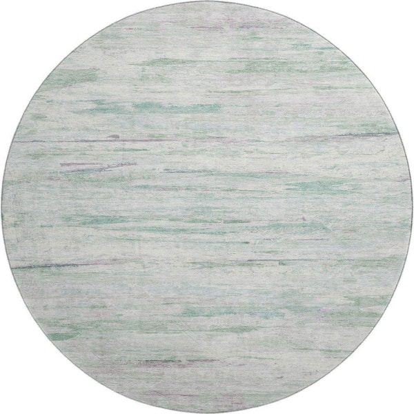 Mayfield Premium Machine Washable Abstract AMF1985 Aloe 8 ft. x 8 ft. Round Rug