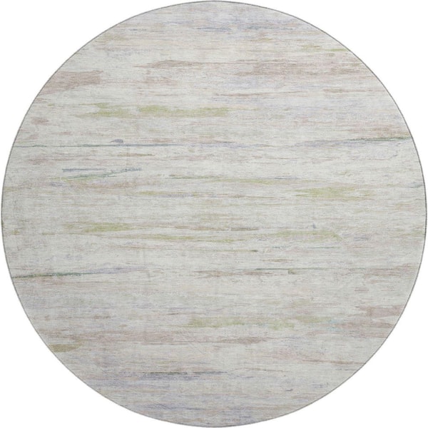 Mayfield Premium Machine Washable Abstract AMF1985 Ivory 8 ft. x 8 ft. Round Rug