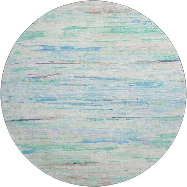 Mayfield Premium Machine Washable Abstract AMF1985 Teal 8 ft. x 8 ft. Round Rug