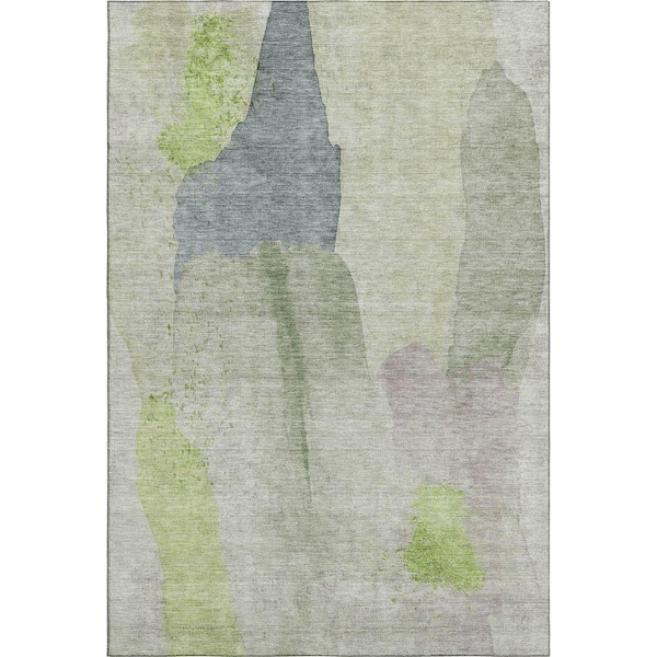 Mayfield Premium Machine Washable Abstract AMF1986 Aloe 10 ft. x 14 ft. Area Rug