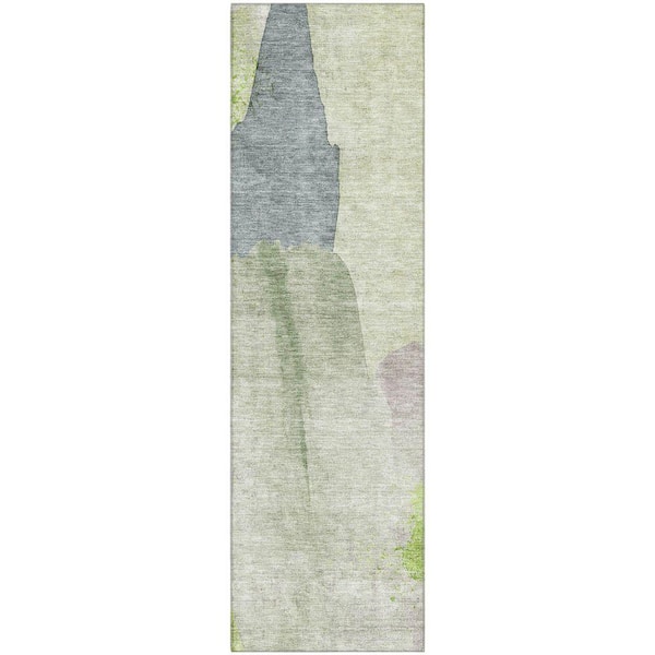 Mayfield Premium Machine Washable Abstract AMF1986 Aloe 2 ft. x 7 ft. Runner Rug
