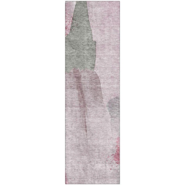Mayfield Premium Machine Washable Abstract AMF1986 Blush 2 ft. x 7 ft. Runner Rug