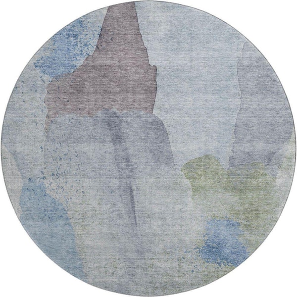 Mayfield Premium Machine Washable Abstract AMF1986 Denim 8 ft. x 8 ft. Round Rug
