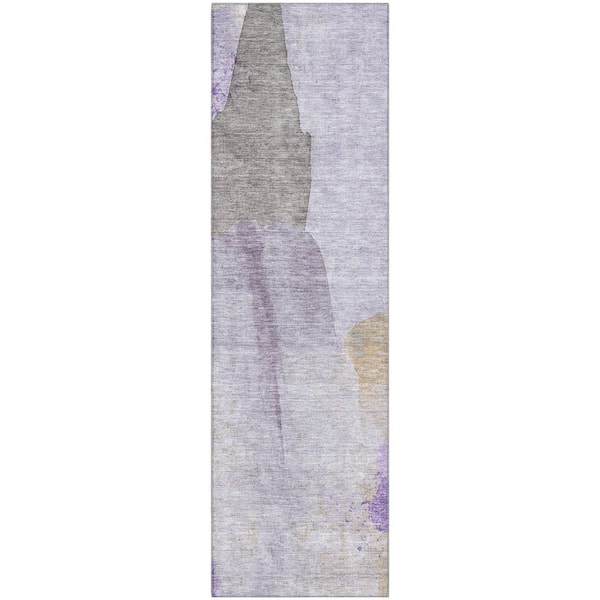 Mayfield Premium Machine Washable Abstract AMF1986 Lavender 2 ft. x 7 ft. Runner Rug