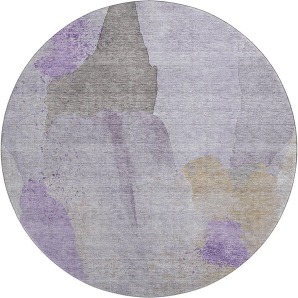 Mayfield Premium Machine Washable Abstract AMF1986 Lavender 8 ft. x 8 ft. Round Rug