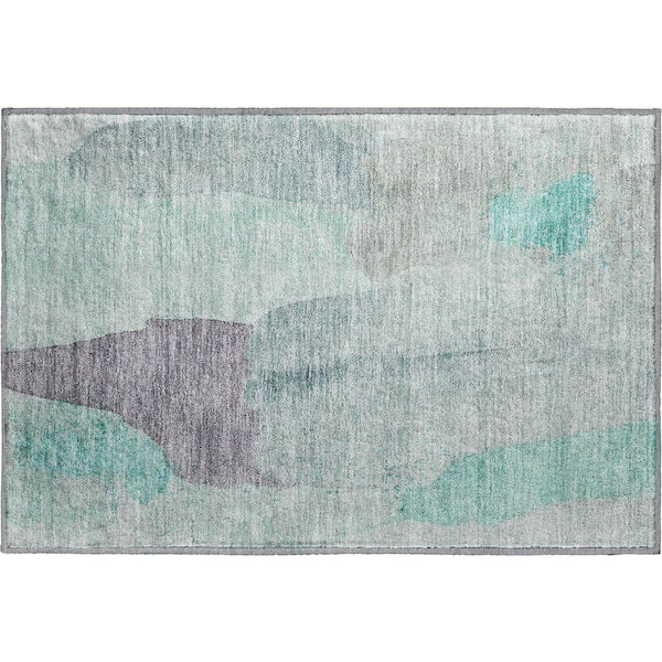 Mayfield Premium Machine Washable Abstract AMF1986 Teal 2 ft. x 3 ft. Accent Rug