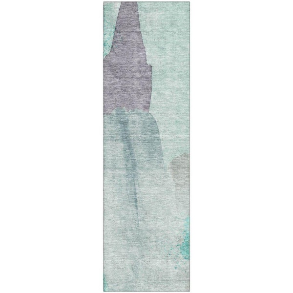 Mayfield Premium Machine Washable Abstract AMF1986 Teal 2 ft. x 7 ft. Runner Rug