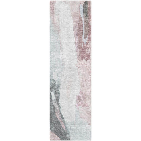 Mayfield Premium Machine Washable Abstract AMF1987 Blush 2 ft. x 7 ft. Runner Rug