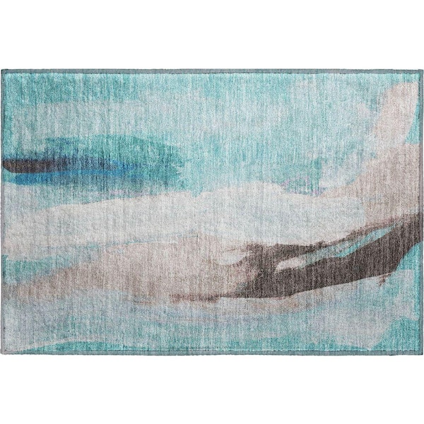 Mayfield Premium Machine Washable Abstract AMF1987 Teal 2 ft. x 3 ft. Accent Rug