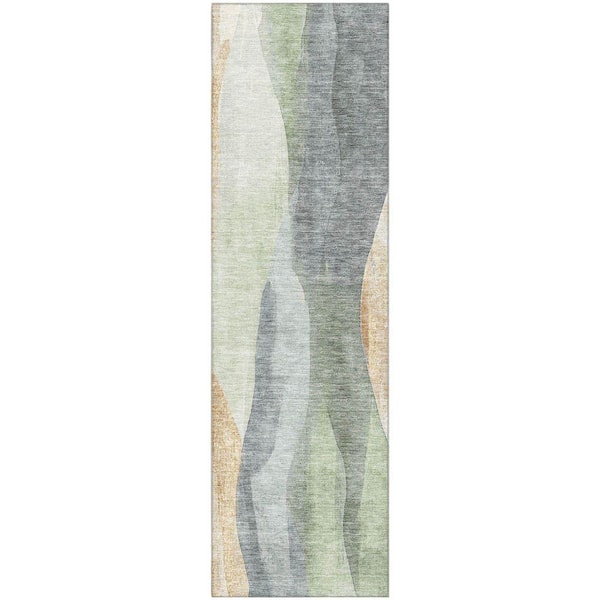 Mayfield Premium Machine Washable Abstract AMF1989 Aloe 2 ft. x 7 ft. Runner Rug