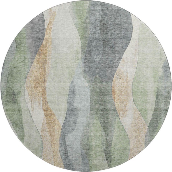 Mayfield Premium Machine Washable Abstract AMF1989 Aloe 8 ft. x 8 ft. Round Rug