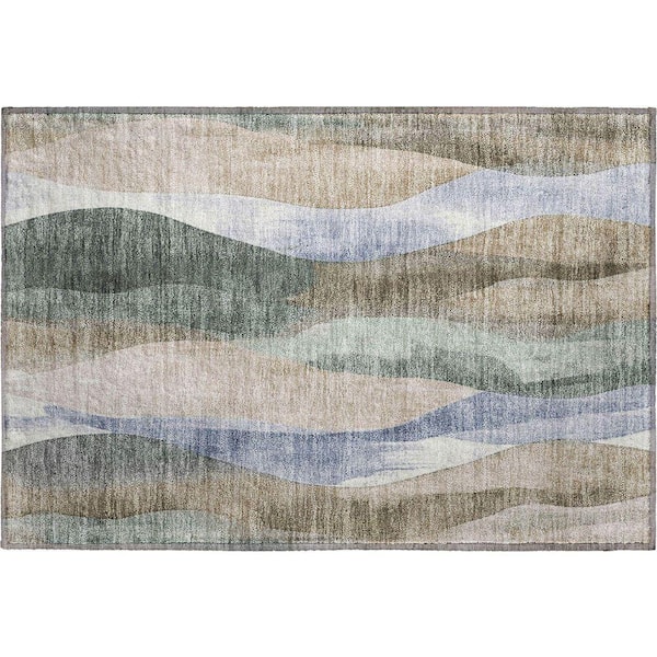 Mayfield Premium Machine Washable Abstract AMF1989 Beige 2 ft. x 3 ft. Accent Rug