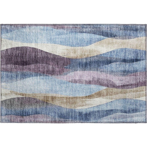Mayfield Premium Machine Washable Abstract AMF1989 Denim 2 ft. x 3 ft. Accent Rug