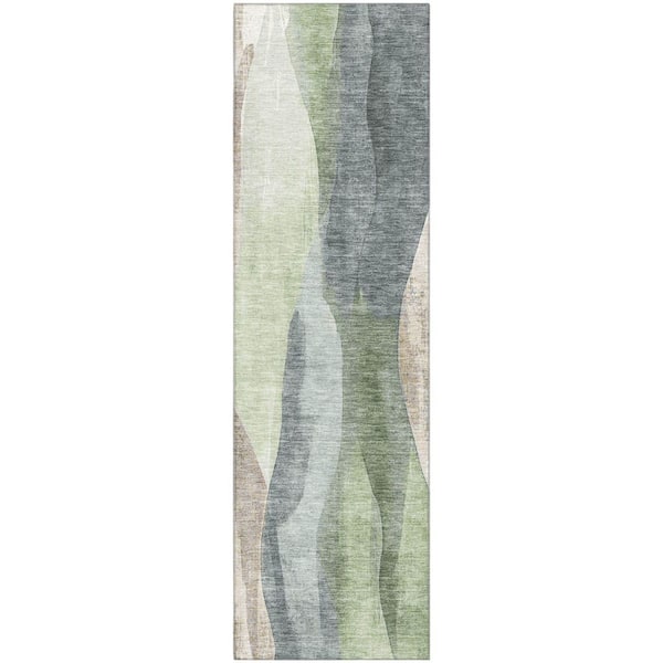 Mayfield Premium Machine Washable Abstract AMF1989 Fern 2 ft. x 7 ft. Runner Rug