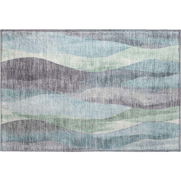 Mayfield Premium Machine Washable Abstract AMF1989 Teal 2 ft. x 3 ft. Accent Rug