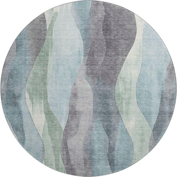 Mayfield Premium Machine Washable Abstract AMF1989 Teal 8 ft. x 8 ft. Round Rug